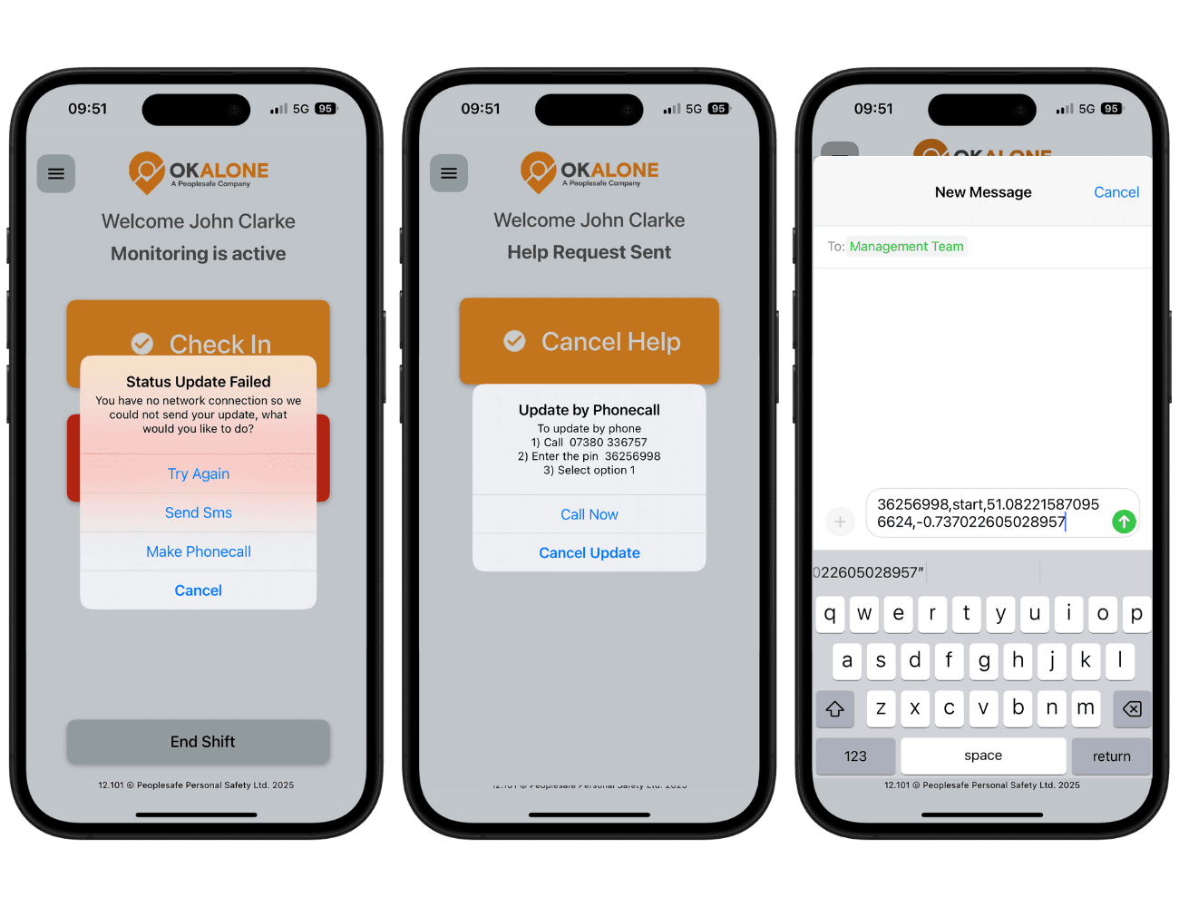 Low Signal Mode+ ensures lone workers can still check-in and stay safe when they’re outside mobile data or Wi-Fi coverage. When no internet connection is detected, the OK Alone app automatically switches to offline mode and guides the worker to complete their check-in via SMS or phone call.