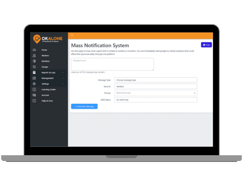 Mass Notifications is a powerful communication tool built into the OK Alone app, allowing supervisors to instantly send alerts or updates to groups of workers. Whether it's a weather warning, site hazard, or company-wide message, teams receive critical information in real time, ensuring everyone is informed and able to respond appropriately.