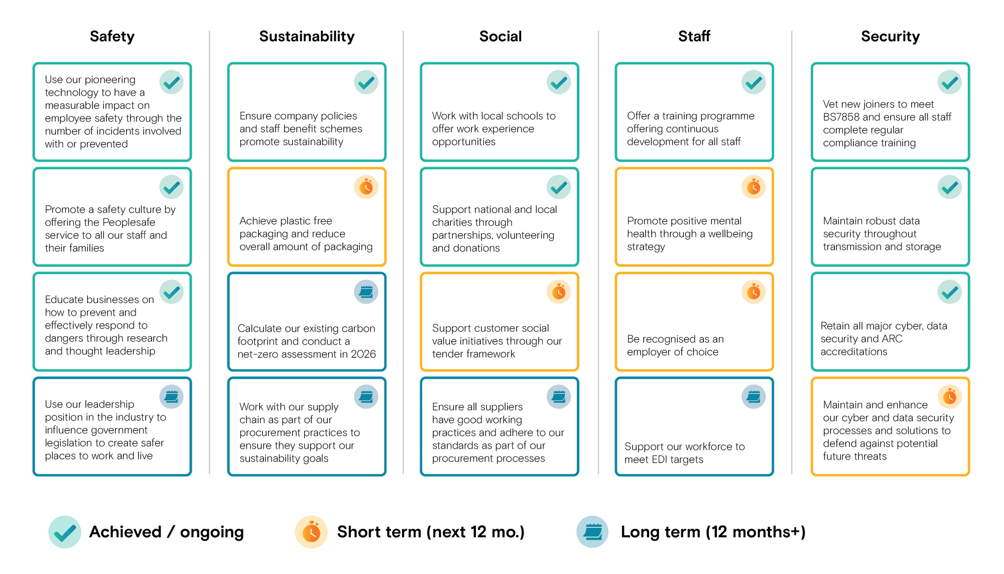 This document outlines our key pillars: Safety, Sustainability, Social, Staff, and Security, each supported by clear commitments and measurable actions. Through these pillars, we aim to not only meet today’s challenges but also build significant, lasting improvements.