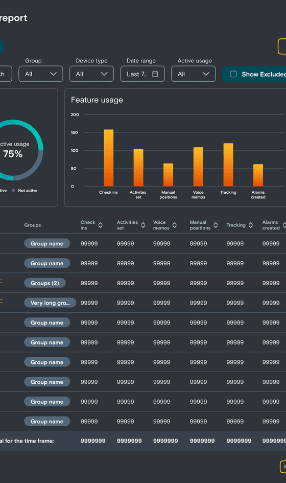 Schedule this report daily to check that staff have their device switched on or app open and in use whilst working. We recommend this for high-risk teams.
